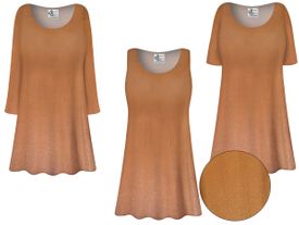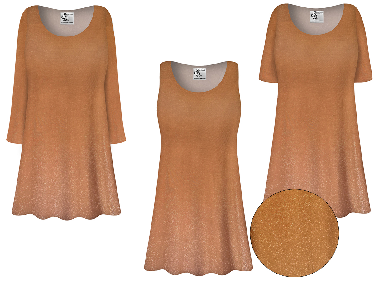 New! Tan-Glimmer Slinky Top Tunics Tanks Blouses 1x - 9xEffortlessly stylish and comfortable, this women's A-Line swing top features a soft blush tan color with silver glimmer embedded in the threads for a naturally elegant look. Designed with plus size women in mind this fabric drapes beautifully over the body, creating a flattering silhouette for everyday wear.