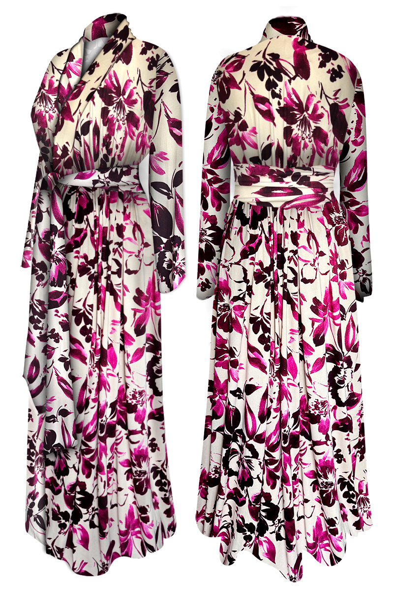 NEW! Ultra Soft Brushed Jersey Fleeting Petals Print Plus Size & Supersize Retro Style Dressing Gown / Hostess Robes 1x-9x Sanctuarie Exclusive! Wrap yourself in vibrant comfort with our Ultra Soft Brushed Fleeting Petals Print Robe. Designed for both elegance and ease, this robe features a lush tropical floral print bursting with bold colors-- perfect for lounging or making a stylish statement at home.