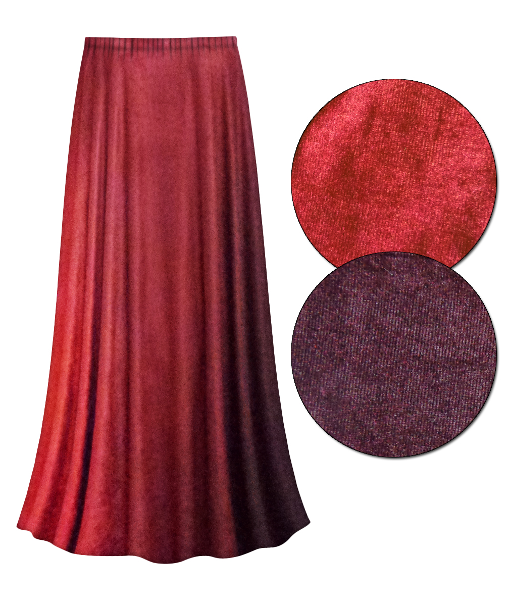 These are fabulous stretchy smooth velvet plus size elastic waist skirts. The color goes from red to burgundy. This skirt is perfect for fun & relaxation.