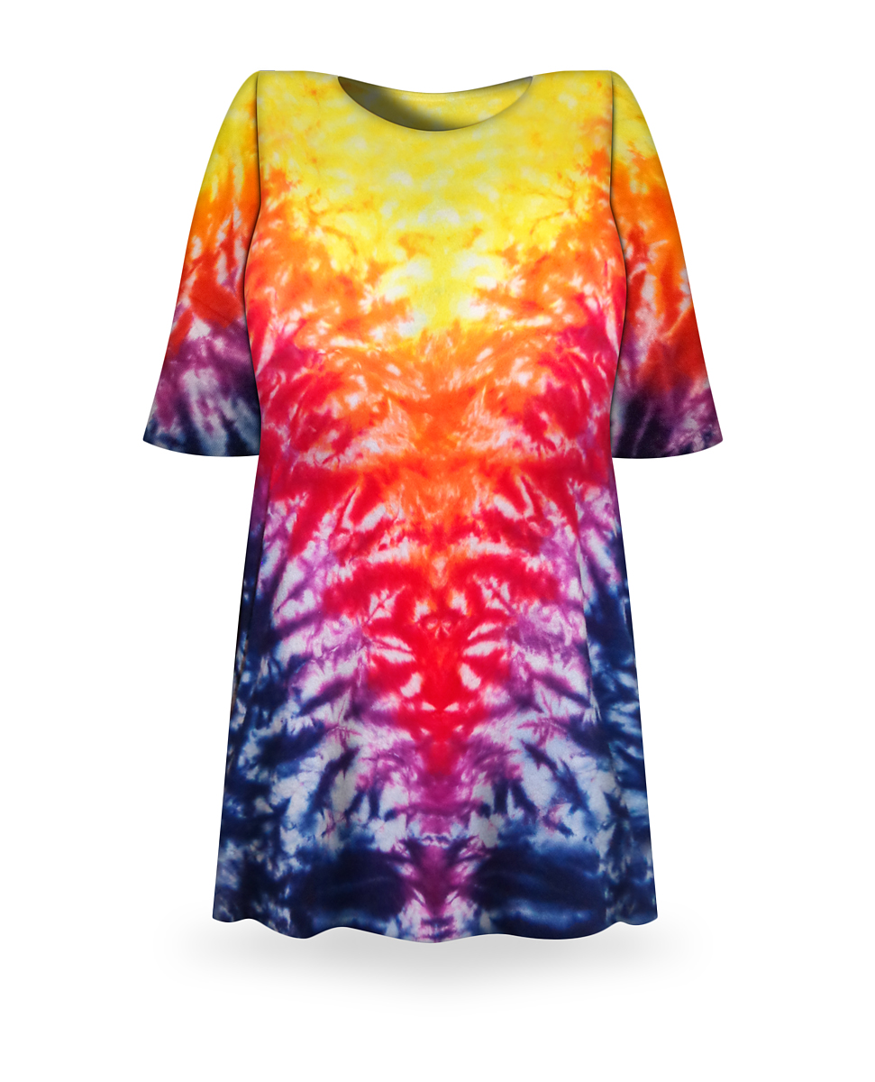 SOLD OUT! SALE! Volcano Tie Dye Plus Size T-Shirt L XL 2x 3x 4x 5x 6xOne of our hottest prints, a volcano inspired V shaped tie dye with colors ranging from bright yellow to gray blue.