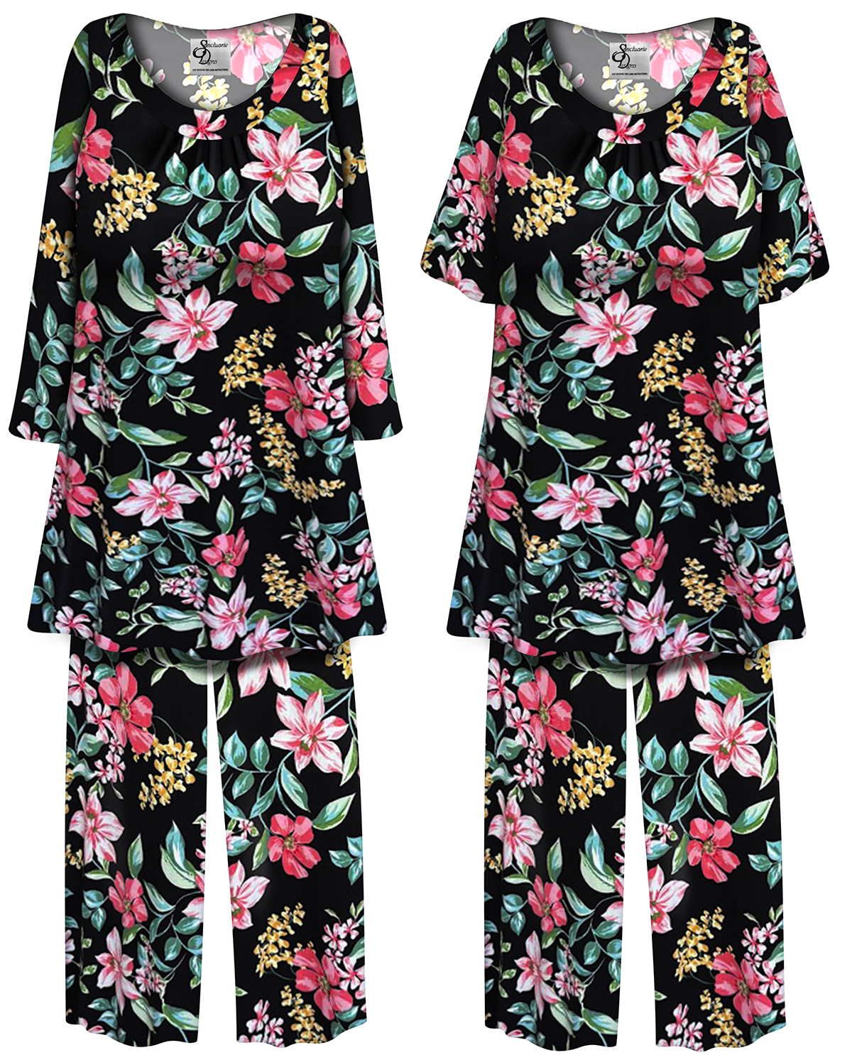 NEW! Black Tropical Floral Plus Size 2-Piece Pajama Set - Soft Brushed Sleepwear