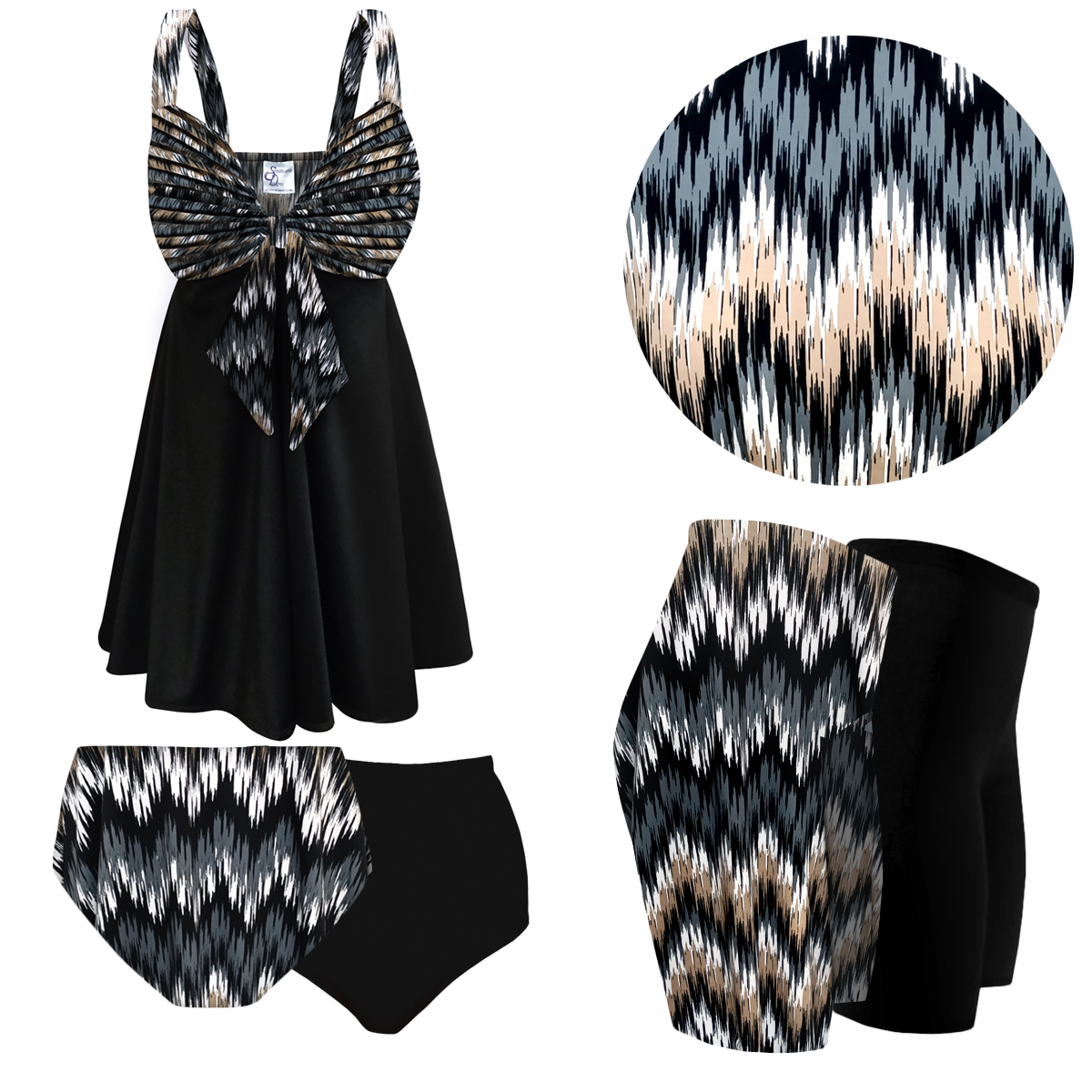 CLOSEOUT CLEARANCE! Plus Size Women's Sweetheart Sound Wave Black Skirt 2pc Swimdress 3x