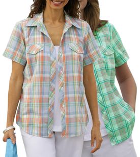 SOLD OUT!!!!CLEARANCE! Plus-Sized Blue with Orange or Green with Pink Plaid Button Down Shirt 6x