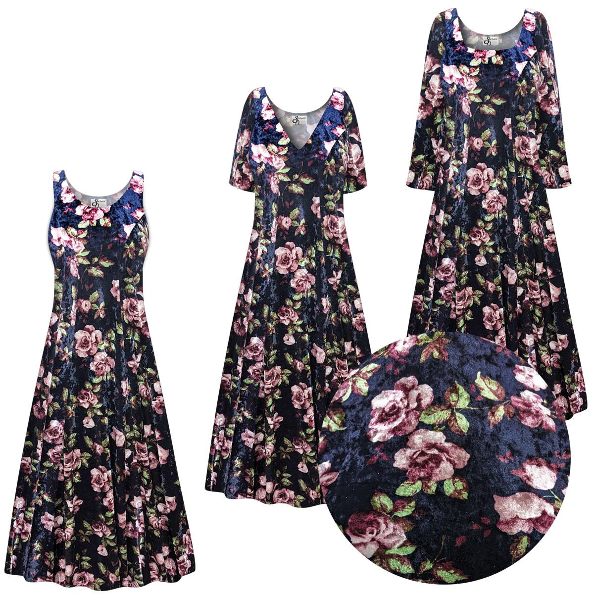 SOLD OUT! Plus Size Rose Dream Ice Velvet Princess Cut Womens Dresses CustomizableThe Sanctuarie Rose Dream Stretch Ice Velvet Fabric with textured Design Dress invites you to a fall night stroll or a fun night out in town! Smooth Stretchy Princess Cut Ice Velvet fabric shapes this flirty flow dress. A comfort fitting top with short, long or sleveeless finish is the perfect match for a long flowing skirt to finish this essential summer look. (Click here for Princess Cut style description). Available in customizable lengths from Petite to XX-Long in sizes Sm Med Lg XL 0x 1x 2x 3x 4x 5x 6x 7x 8x & 9x! Length measurements are taken from the top of the shoulder down.