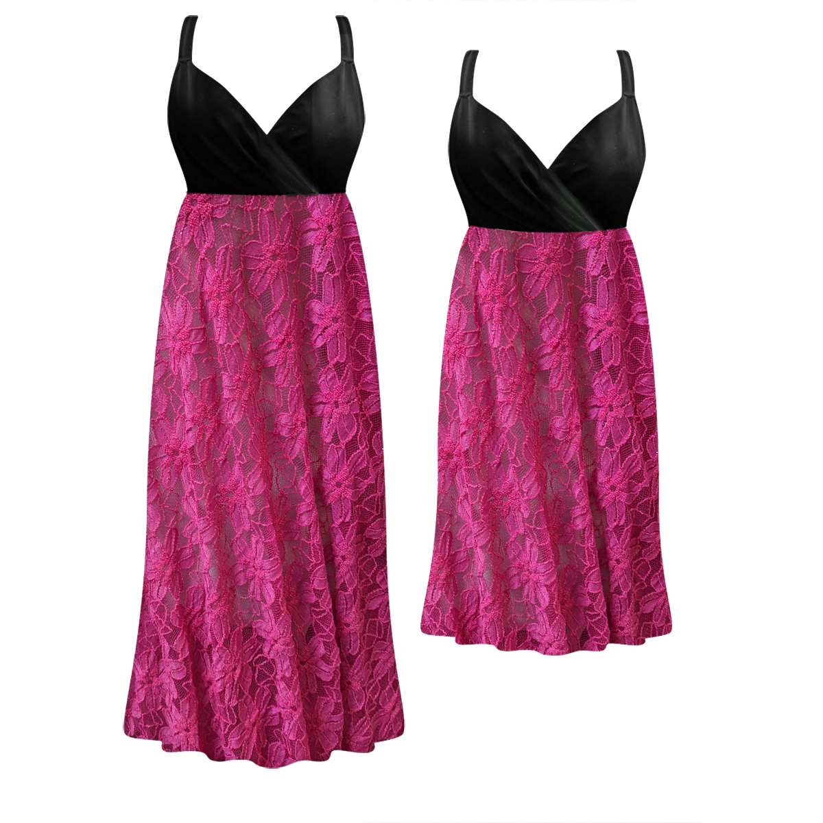 Plus Size Hot Pink Lace Lined Empire Waist Women's Dress Customizable 0x-9xThis stunning plus size Navy Lace Lined design is perfect for any occasion. The empire waist design flatters your figure while the Lace Lined fabric drapes elegantly on the body. The unique Solid print with shinny finish adds a touch of glamour to your look. Available in sizes small to extra large (9x), this dress is ideal for the fashion-forward woman of any size. It is sure to turn heads and become a staple in your wardrobe. The standard length is 50"/52". Matching wrap is available.