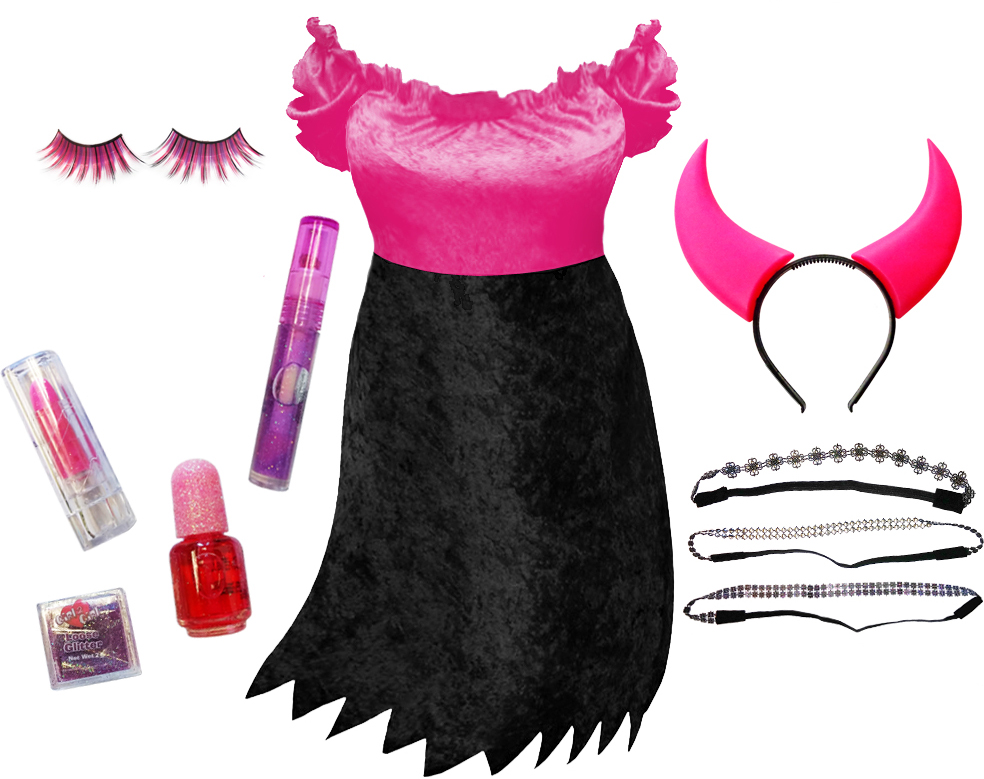 SALE! Economy Pink & Black Devil Plus Size & Supersize Halloween Costume and Accessory Kit! Lg XL 1x 2x 3x 4x 5x 6x 7x 8x 9xPlanning to be a Plus Size Sexy Pink Devil this Halloween?