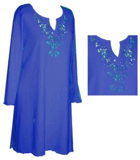 SALE! Plus Size Blue Rhinestone Tops, Sparkly Plus Size & Supersize Extra Long Shirts 0x 1x 2x 3x 4x 5x 6x 7x 8x 9xThese are really pretty machine washable poly/cotton blend shirts, with beautiful rhinestone embellishment around the neckline. The sleeves are appx 3/4 length, and the shirts are extra long appx 38"-40".