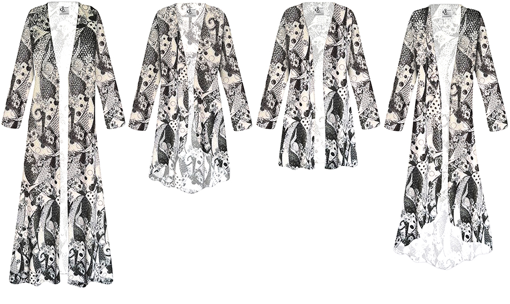 NEW! Beautiful Plus Size & Supersize Shimmery Black and White Paisley Mosaic Slinky Customizable Jackets & Dusters 1x to 9xIntroducing our elegant and versatile Plus Size Jackets, available in two gorgeous styles: the Straight Cut and Cascading Cut. Made with lightweight, high-quality slinky fabric, these jackets are designed to add a touch of sophistication to any outfit. We specialize in plus size clothing for women and offer sizes ranging from XL to plus size 9x.