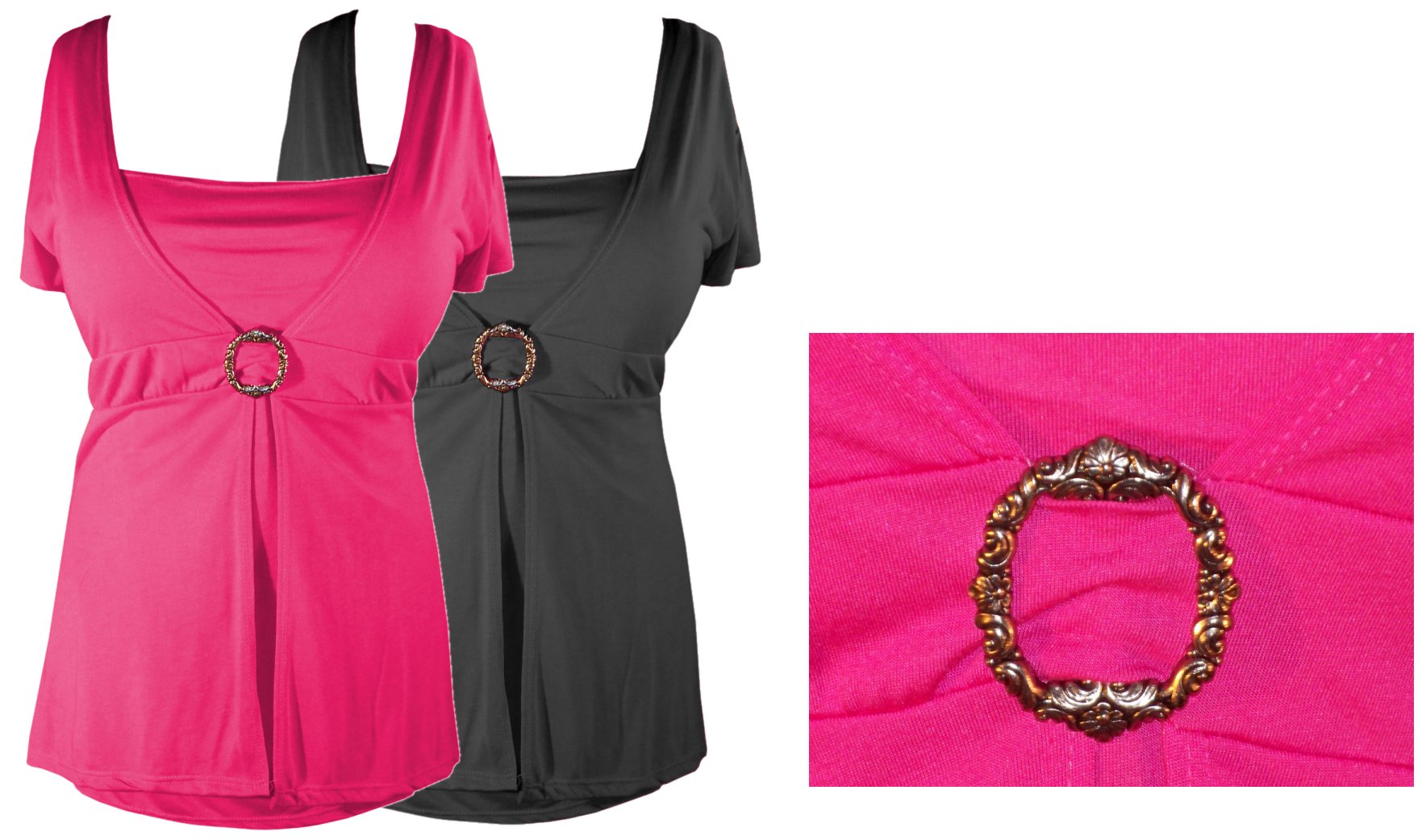 SOLD OUT!!!!!SALE! Gorgeous Plus-Sized Black Babydoll Top with Floral Medallion 6xThese are really pretty babydoll tops. Has a band around the empire waist and a lovely shiny floral medallion at the front.