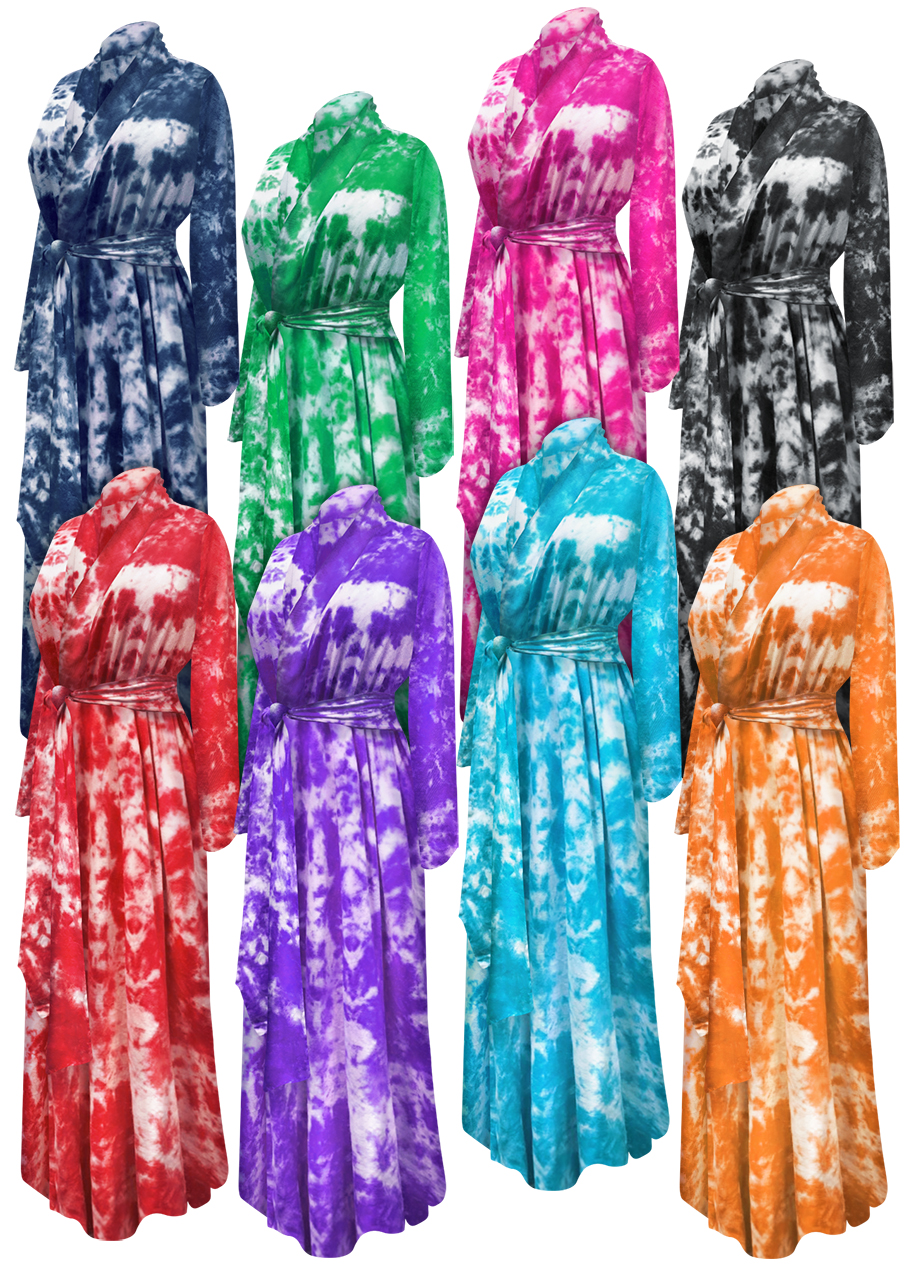 SOLD OUT! SALE! Plus Size Black Navy Turquoise Pink Green Purple or Red Marble Tie Dye Robe with Attached Belt Customizable 0x 1x 2x 3x 4x 5x 6x 7x 8x 9x Plus size robe in a refreshing tie dye fabric, perfect in every way. It has long sleeves and inside pockets. Robe is constructed with an elastic internal belt (pictured above) to create the sexy flowy effect across the back