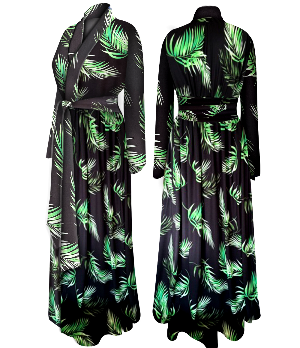NEW! Ultra Soft Brushed Plus Size & Supersize Midnight Palm Dressing Gown / Hostess Robes 1x-9x Sanctuarie Exclusive! Wrap yourself in vibrant comfort with our Soft Rayon Plus Size & Supersize Tropical Breeze Robe. Designed for both elegance and ease, this robe features a lush tropical floral print bursting with bold colors-- perfect for lounging or making a stylish statement at home.