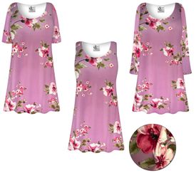 NEW! Beautiful Customizable Plus Size & Supersize Romantic Mauve Roses Slinky Tops Tunics Tanks Blouses 1x - 9xIntroducing our stylish and versatile "Romantic Mauve Roses" Plus Size A/Line or Princess Cut Tops, perfect for any occasion. Made with high-quality lightweight ITY Slinky in a Black & White print, these tops are designed to fit and flatter women of all sizes and shapes. We specialize in plus size clothing for women, and we're proud to offer sizes ranging from small to plus size 9x, as well as length options of long, short, or sleeveless.