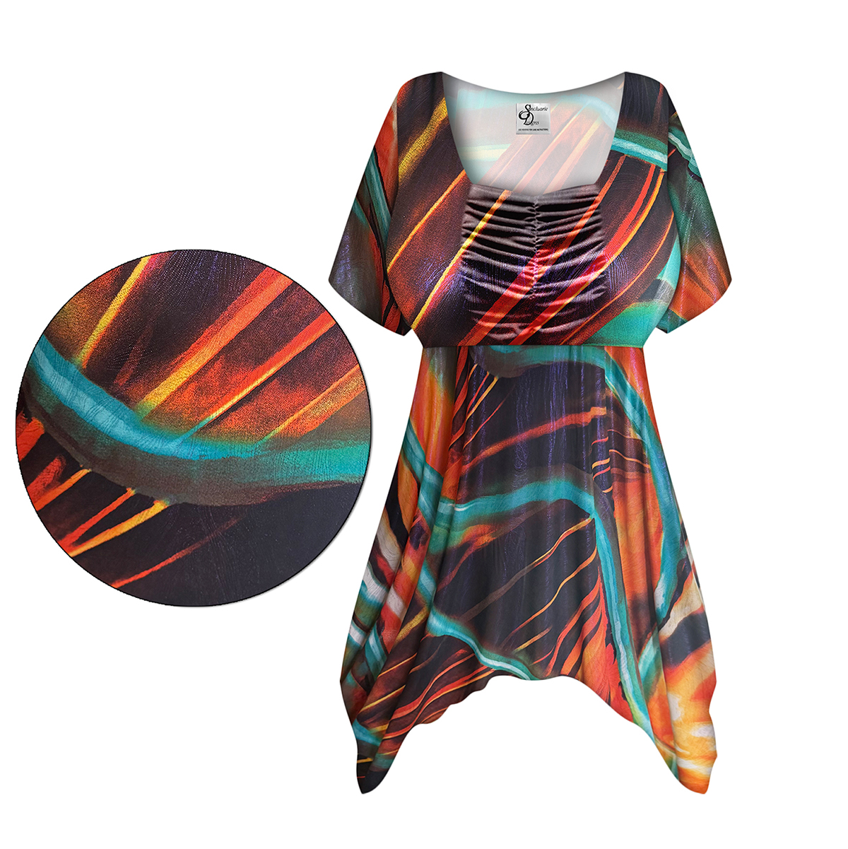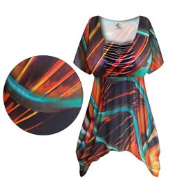 NEW! Customizable Plus Size Sunset Wave Slinky Print Babydoll Top 0x 1x 2x 3x 4x 5x 6x 7x 8x