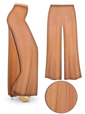 Elevate your look with these effortlessly elegant tan wide-leg pants, crafted from a premium fabric infused with a subtle silver glimmer for a refined, light-catching finish. Designed to flatter, these pants feature a high-waist silhoutte and a smooth drape that flows beautifully with every step. The lightweight yet structured fabric offers comfort without sacrificing style, making these pants perfect for both daytime wear and evening occasions. the understated shimmer adds just the right amount of sophistication - ideal for pairing with dressy tops, blouses, or casual knits.