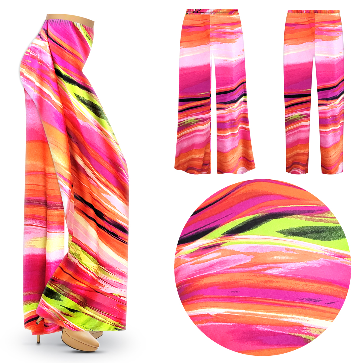 SOLD OUT! Plus Size Orange Spring Song Slinky Womens Palazzo Pants - Tapered PantsSpring into the new season with the Orange Spring Song Wide-Leg Palazzo Pants! Lightweight slinky, with a Orange Spring Song Color slinky fabric, shapes these pants that have a high, elastic waist. The ultra-wide legs continue down to flow round hems. They are available in straight leg, tapered, gaucho / wide leg palazzo pants, and come in either full or capri length. They boast the perfect print for fun & relaxation, and are completely customizable!