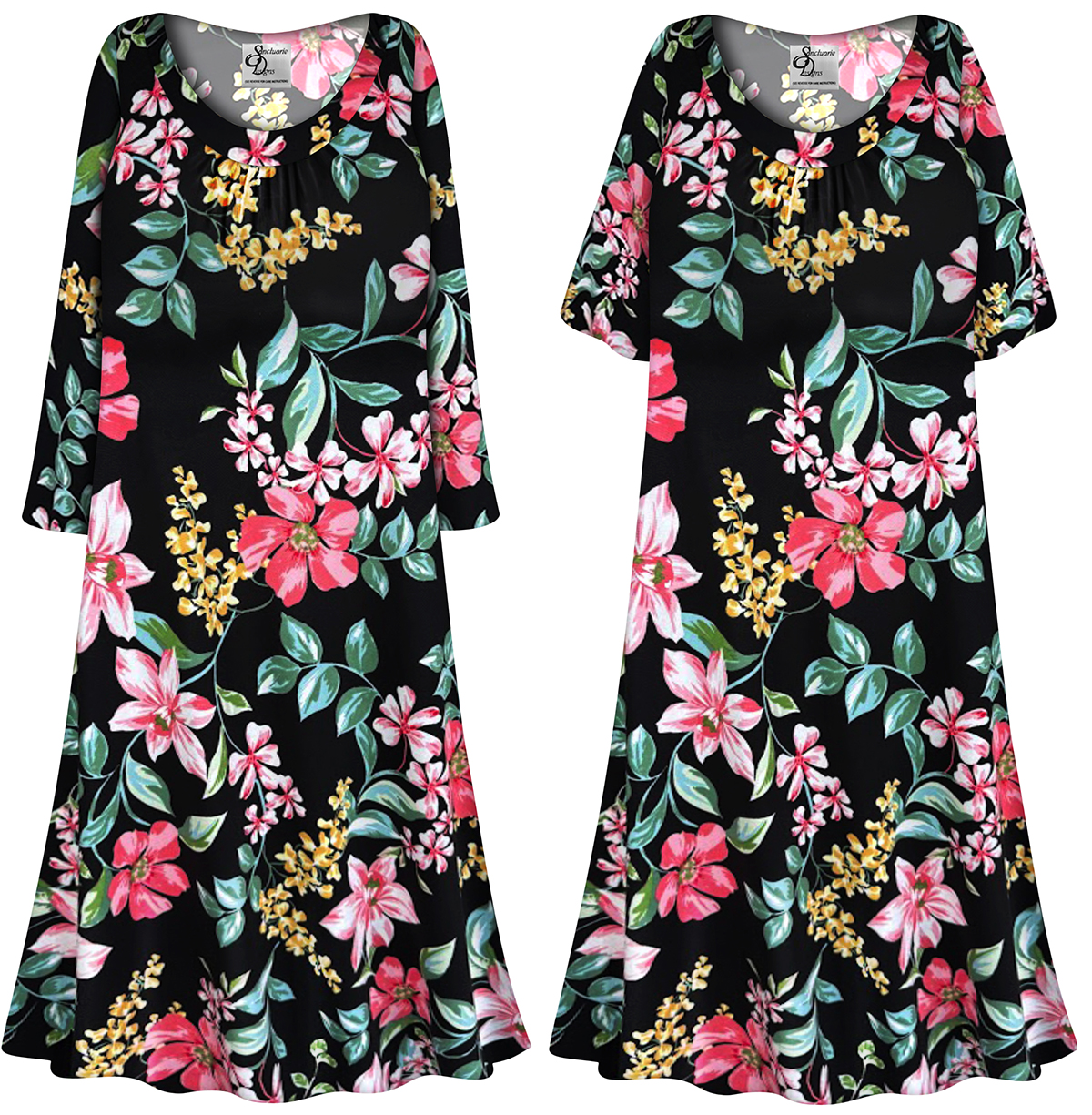 Relax in comfort and style with the Black Tropical Floral Plus Size Muumuu Nightgown. Designed in a classic muumuu silhouette, this flowy sleep dress features a bold tropical floral print on a slimming black background.