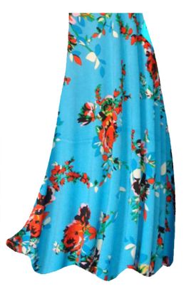 SOLD OUT! SALE! Customizable Azure Blue With Crimson Red Rose Buds Slinky Print Plus Size & Supersize Skirts - Sizes Lg to 9xPatterns and colors are