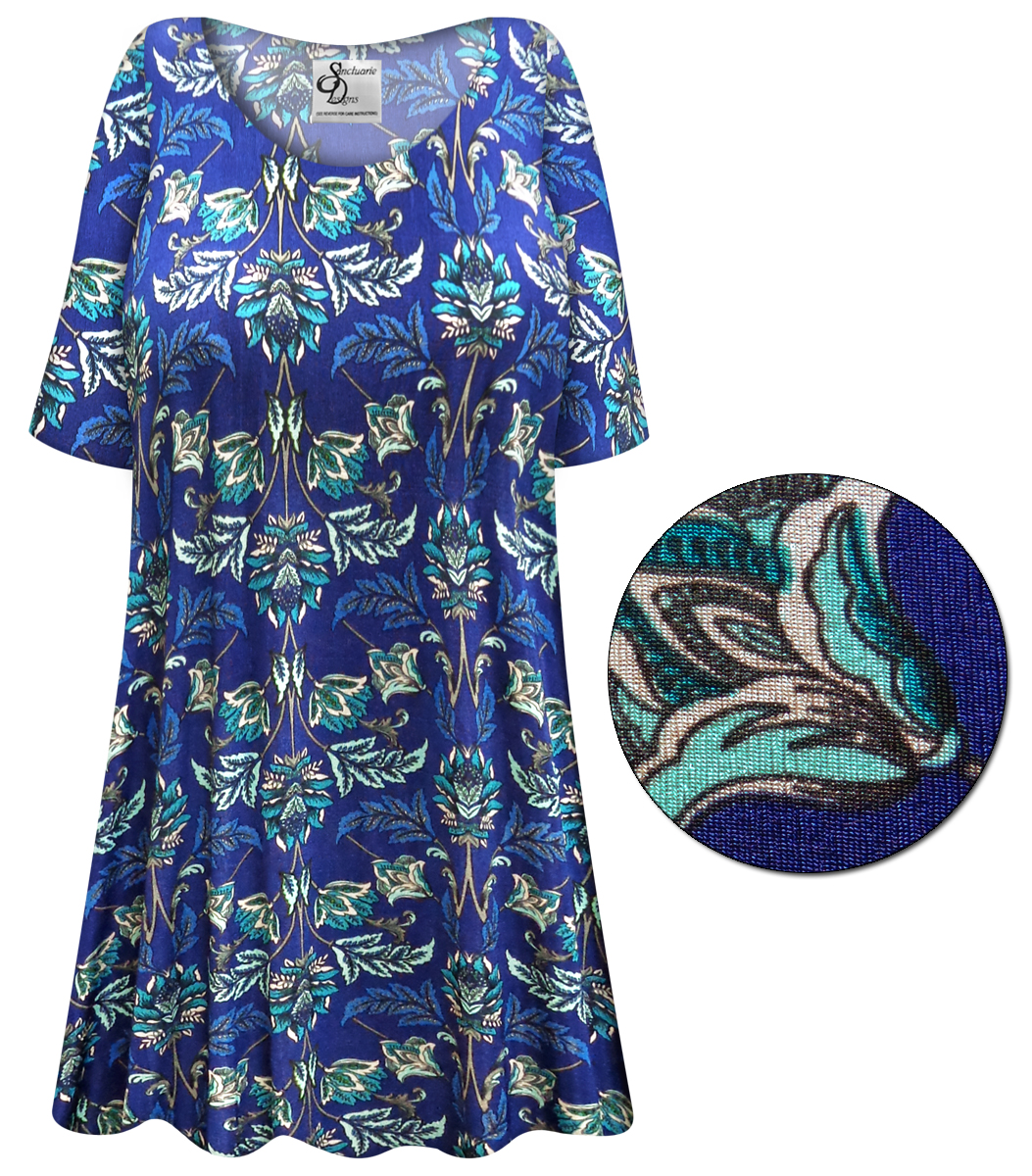 SOLD OUT! SALE! Customizable Blue Floral Slinky Print Plus Size & Supersize Short or Long Sleeve Shirts - Tunics - Tank Tops - Sizes Lg XL 1x 2x 3x 4x 5x 6x 7x 8x 9xThese are fabulous bright and vibrant lightweight stretchy