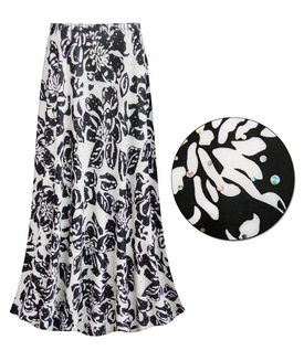 SOLD OUT! SALE! Customizable Black & White Floral With Sparkles Slinky Print Plus Size & Supersize Skirts - Sizes Lg to 9xPatterns and colors are