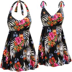 SOLD OUT! 2pc Pretty Black & Tan Floral Floral Plus Size Halter SwimDress Swimwear or Shoulder Strap 2pc Swimsuit 0x1x 2x 3x 4x 5x 6x 7x 8x 9x