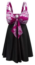 SOLD OUT! Plus Size Womens Swimsuit Midnight Rose Two-Piece Babydoll with Belt Swimdress with Short or Panty Bottom